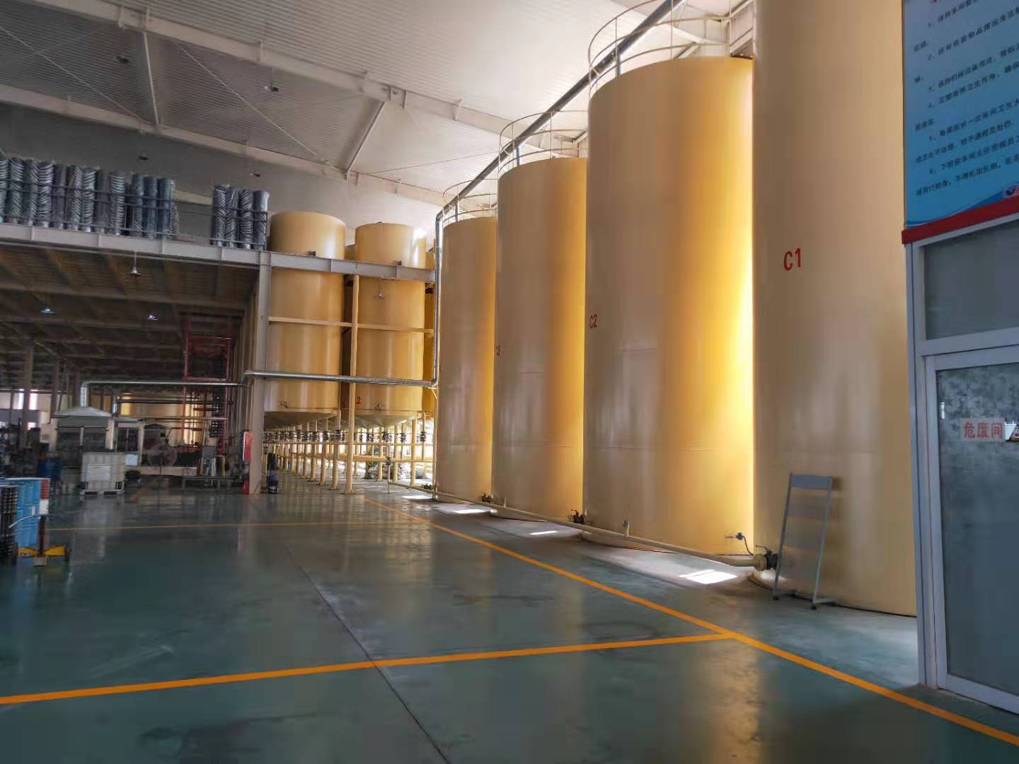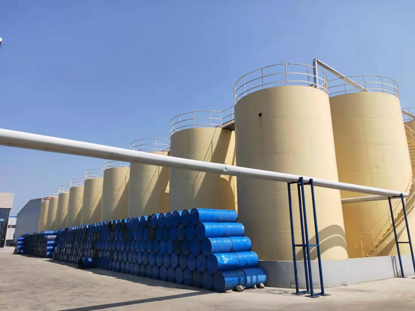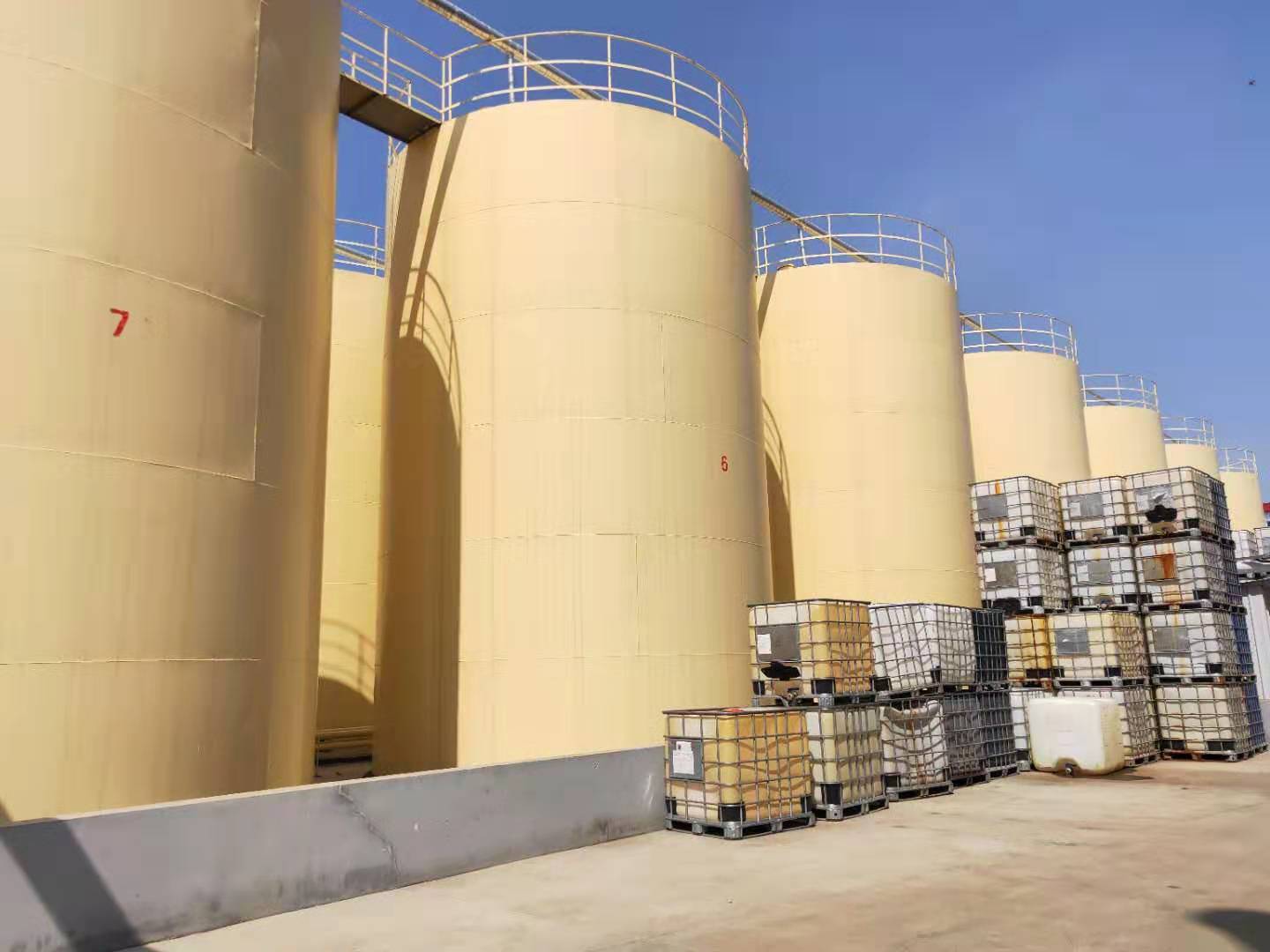 储油区位于厂区中部,整个灌区占地近两亩,灌区看上去整齐有序,储存400吨的4个大型储油罐就位于此,另外还有几十个中型油罐分列周围,即方便大型油罐车的装卸,又便于厂内油泵的抽油生产,能储存1万吨的进口基础油,保证了整个工厂的基础油供应和生产。
